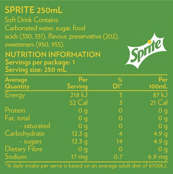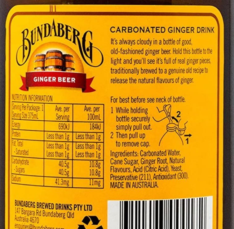 Ради интереса я также сравнил состав sprite и ginger beer. Забавно, что сахара в спрайте в два раза меньше, а E-добавок в два раза больше!
